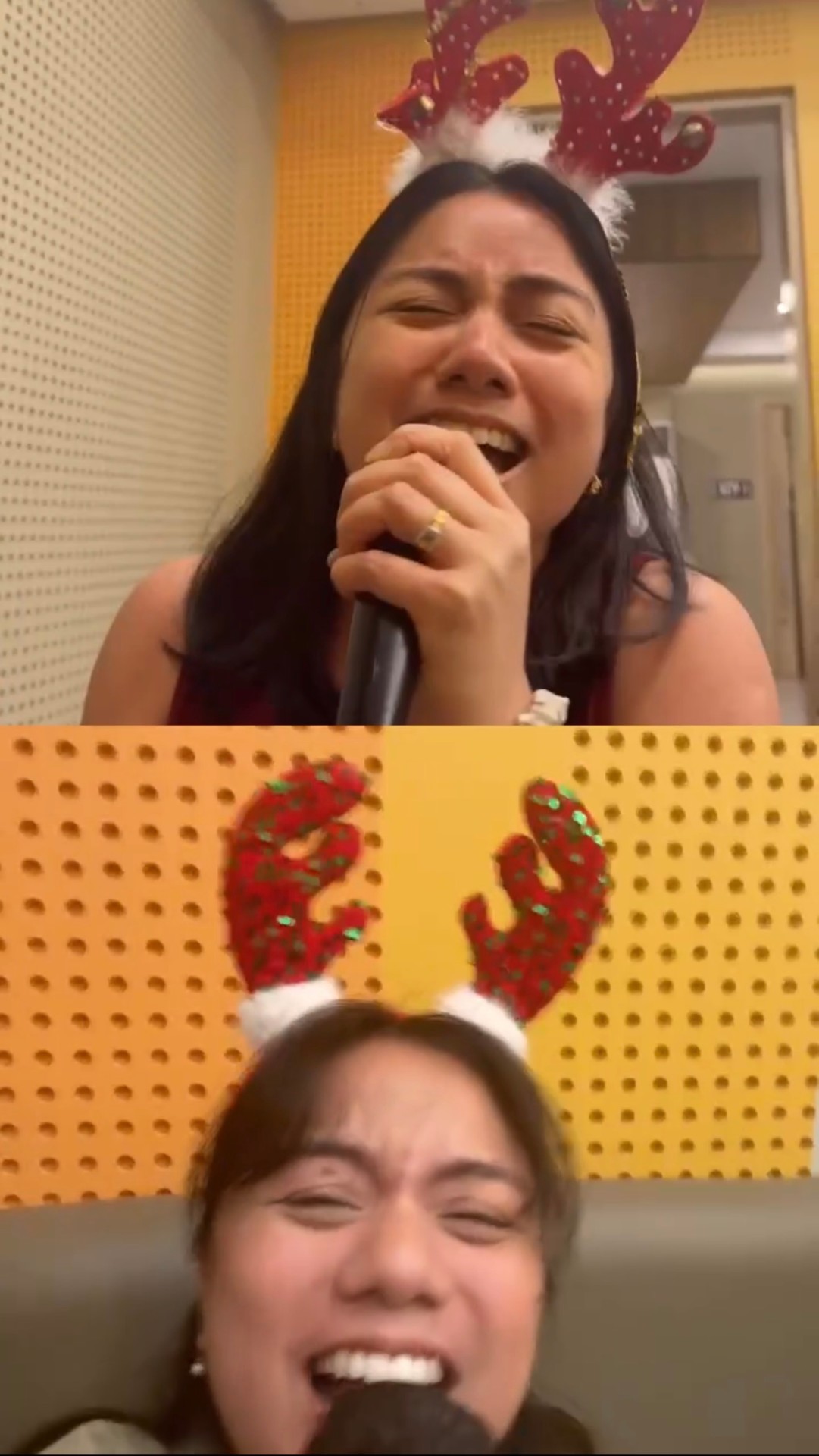 Both cameras turn on automatically. See yourself and the scene in a clean split-screen viewfinder.